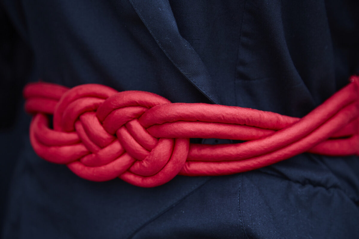 Se per esempio hai i fianchi larghi non devi fare altro che annodare la fusciacca sulla parte laterale, il tessuto che ricade sulla gamba potrà nascondere dei fianchi un po’ larghi. Se invece vuoi nascondere la pancia, annoda la fusciacca sul davanti.