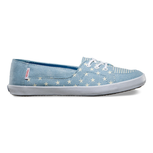 La collezione di Vans dedicata alla primavera/estate 2015 non comprende solo il proprio ‘cavallo di battaglia’, ovvero le originali sneackers stringate (disponibili sia basse che alte alla caviglia), ma spazia anche con un altro modello molto comodo e pratico amatissimo dalle donne: le Slip-On (una fusione tra le slippers e le sneakers) che vengono proposte in diversi materiali a tinta unita, effetto slavato sfumato (dove il colore di base è il bacino che si unisce ad altri colori più accesi) oppure a fantasia.