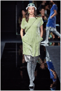 Un nuovo abbinamento quindi, uno spunto di come si può abbinare il verde al grigio, in tutte le sue tonalità fino al grigio metallico per un outfit chic, femminile e alla moda.