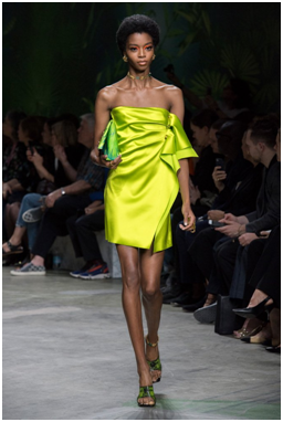 Il verde proposto da Versace è legato a toni acidi, ma si combina nelle sue varianti.