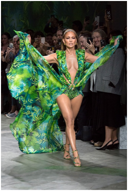 Come nella bellissima fantasia dell’abito indossato da Jennifer Lopez alla sfilata della collezione primavera estate 2020.