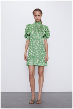 Come abbinare il verde con il color ecrù? La scelta di Zara per il mini-dress con manica corta a sbuffo ci viene in aiuto.