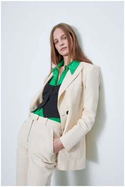 Il verde oliva proposto da Mango nel completo pantalone è adatto alle rosse o castane ramate con occhi chiari o scuri. In abbinamento alla blusa verde salvia diventa un look perfetto per l’ufficio come per una cena, da indossare h24.
