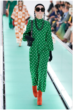 Anche nella collezione primavera-estate 2020 di Gucci troviamo spunti e suggerimenti su come abbinare il verde.