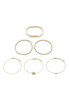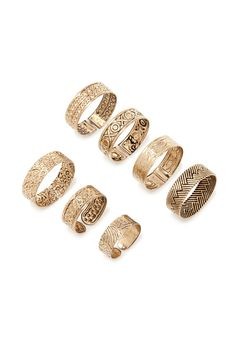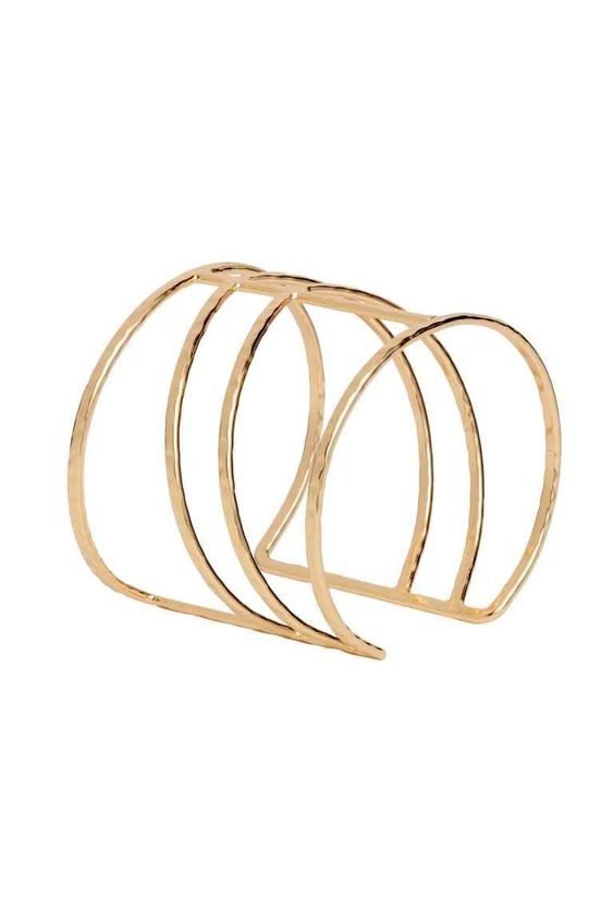 Per ricreare il look non devono mancare quindi una pioggia di anelli: numerosi, semplici e rigorosamente dorati, come quelli di Nordstrom, o incisi, come quelli proposti da Forever 21. E molti devono essere anche i bracciali: bangles rigidi o meno, ma sempre color oro, come quello di SIX impreziosito da pietre colorate, o quello di H&M rigido, più spesso ma allo stesso tempo elegante, può essere il punto luce di un outfit monocolore e formale.