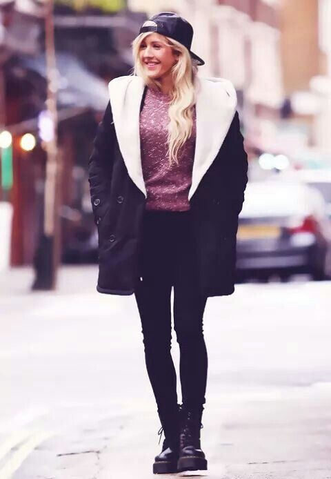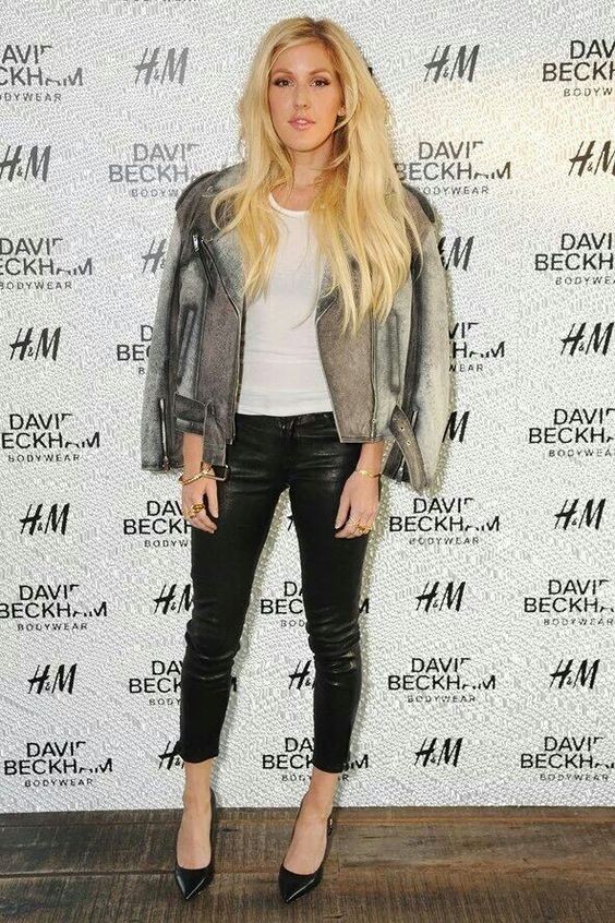 In molti scatti e video Ellie Goulding appare con un look piuttosto rock, total black, da vera bad girl. Anche durante i concerti e le diverse apparizioni pubbliche la cantante ha sfoggiato look quasi maschili: shorts in pelle, T-Shirt stampate con scritte o skinny jeans, sempre rigorosamente neri (il colore d’eccezione se si vuole ricreare un look biker). A questo tipo di outfit Ellie Goulding è solita abbinare due tipologie di calzature: i classici ed intramontabili Dr. Martens, che si possono reperire in diverse colorazioni e finiture, oppure dei tronchetti (sempre neri) con il tacco largo.