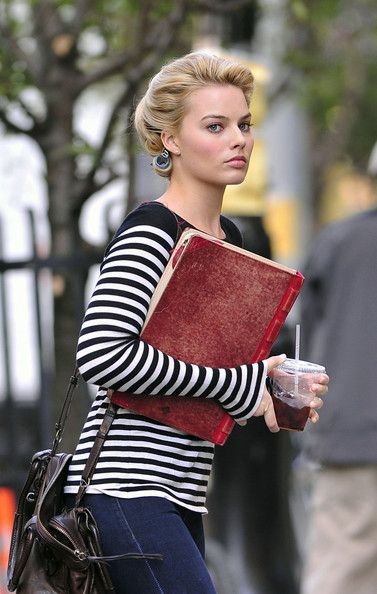 Fuori dal Set Margot Robbie sembra quasi la ragazza della porta accanto, occhiali, shorts in jeans e maglietta a righe quasi irriconoscibile. Posato il copione l’attrice australiana sceglie uno stile semplice, da tutti i giorni con camicette, jeans skinny azzurri o neri o una salopette verde militare e cardigan morbidi spesso contraddistinti da fantasie a stampa. Il look si può ricreare con: Maglietta a Righe di Marc O’ Polo e/o Esprit, Short Diesel, Cardigan Vila e/o Sisley, pantaloni skinny neri di Diesel o azzurri di Top Shop.