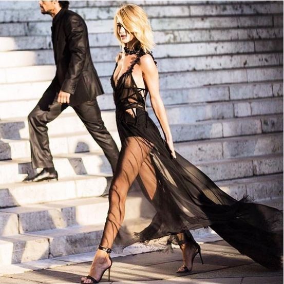 Rosie non rinuncia alle paillettes anche se si tratta di abiti lunghi: di recente l’abbiamo vista con un abito nero lunghissimo ricoperto interamente di pailettes indossato al Vanity Fair Oscar party.