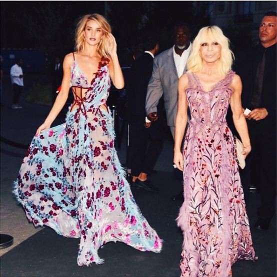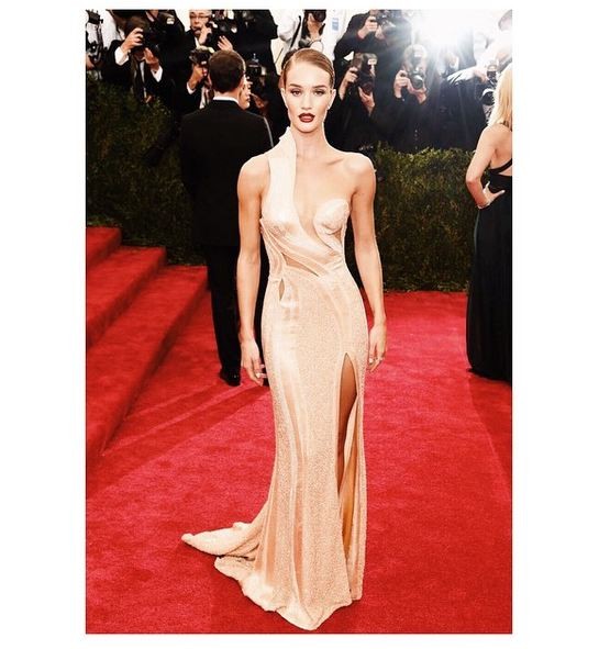 Per le serate di gala, come quelle organizzate dai più grandi stilisti (non si può non citare in questo caso Donatella Versace), Rosie opta quasi sempre per l’abito lungo, magari arricchito da uno strascico in tessuto o velato: in diverse occasioni, infatti, ha indossato abiti di questo genere firmati proprio Versace. Via libera quindi ad abiti lunghi e stretti, caratterizzati da scollature geometriche, spacchi vertiginosi, davanti e dietro, velati o con paillettes.
