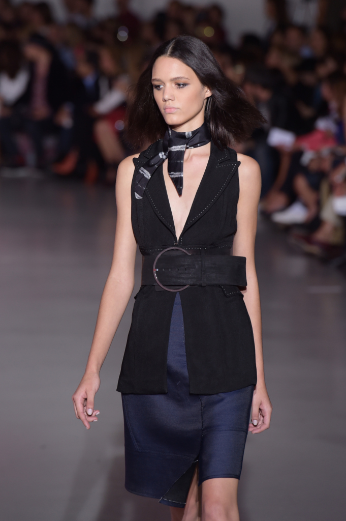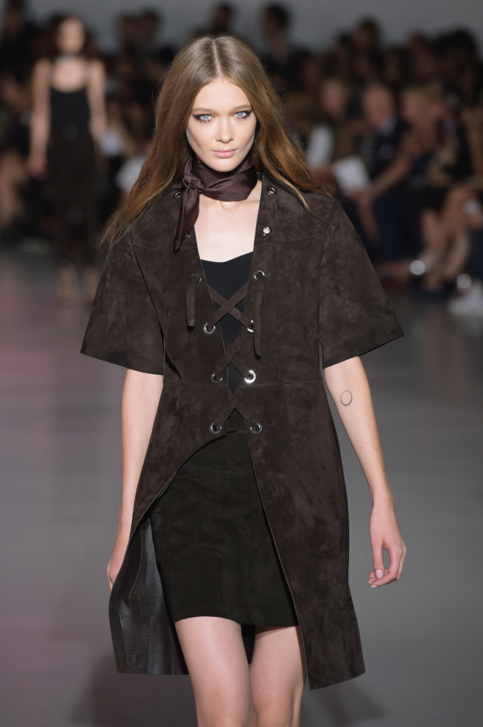 A proposito di frange, che sfilata dopo sfilata si candidano sempre più seriamente a essere tra i maggiori trend della prossima bella stagione tanto per gli abiti quanto per gli accessori: a esse si affiancano e avvicendano dettagli che rimandano allo stile Costume National degli esordi: cinture alte con grandi fibbie e buchi-oblò in metallo.