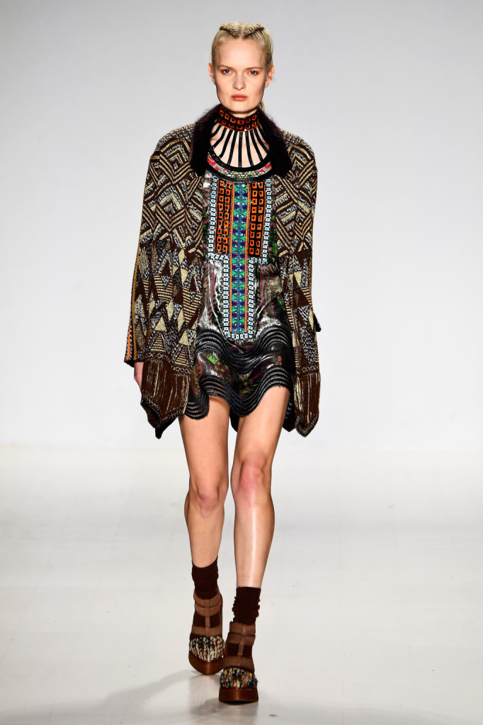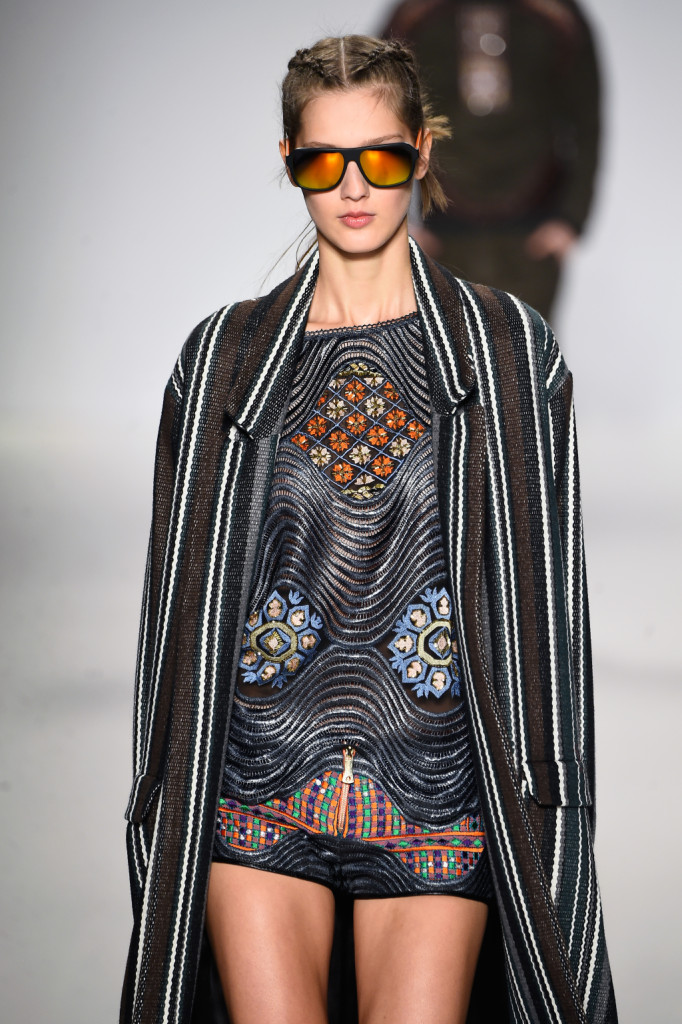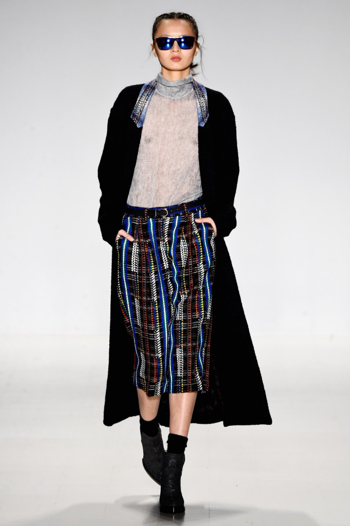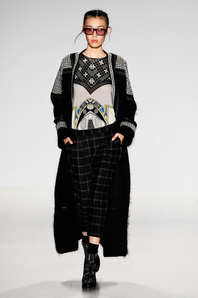 Custo Barcelona presenta la collezione fall winter 2015 2016 sulle passerelle di New York. L’ispirazione contemporanea si caratterizza di incursioni etniche e due motivi principali: tartan e pied de poule.