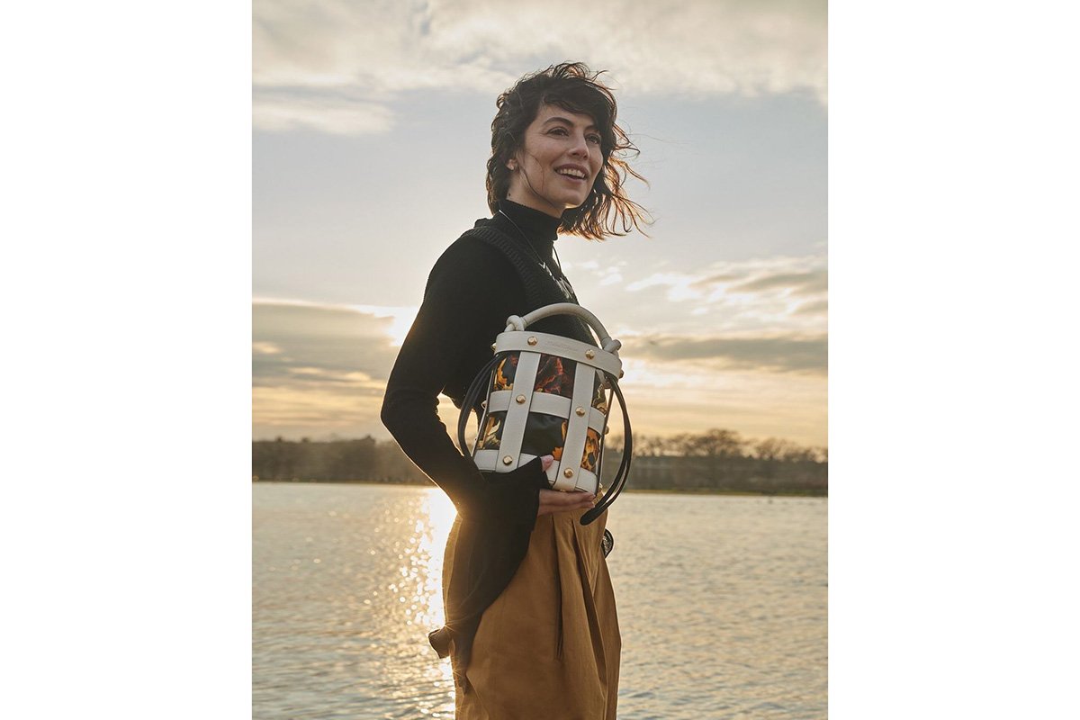 Dopo il lavoro, al tramonto, Alessandra Mastronardi con la sua Cage Bag (ph Instagram @lamastronardi)