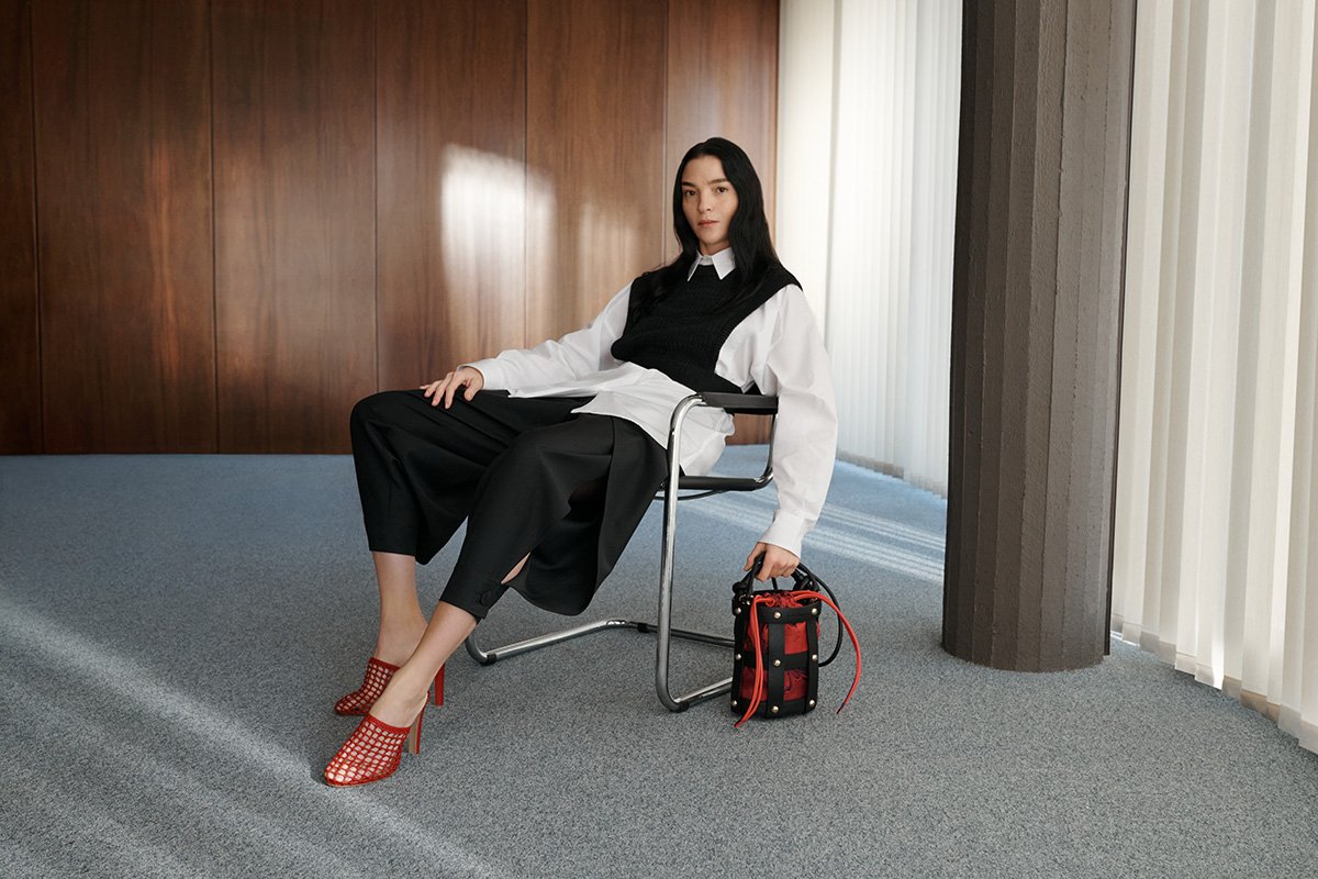 A terra e con la Cage Bag in mano: Mariacarla Boscono è appassionata (@courtesy ufficio stampa Ferragamo)