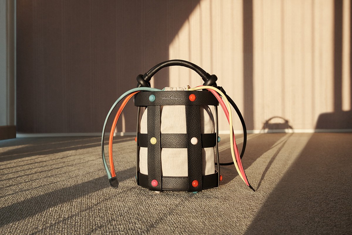 La Cage Bag ha una costruzione a gabbia molto leggera, e in più ha la caratteristica di essere due borse in una: il sacchetto interno con lacci è completamente estraibile e intercambiabile ed è proposto in pelle, tono su tono o a contrasto, in tessuto naturale o in seta con delle stampe foulard d’archivio, rivisitate per la nuova stagione.