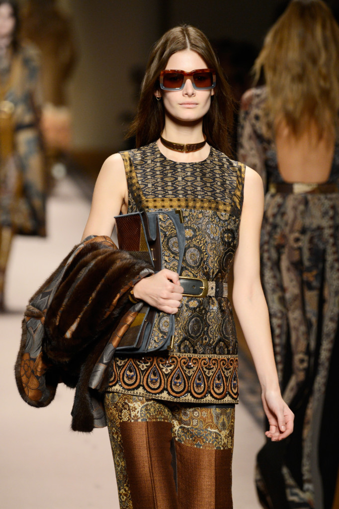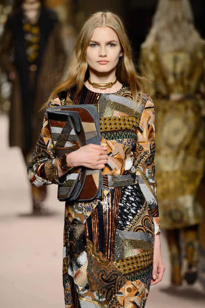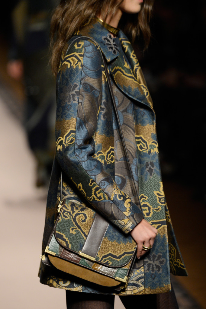 La collezione autunno-inverno 2015 2016 di Etro è eclettica, sembra che i capi lavorati siano molto di più, sembrano più quadri da ammirare. Folgara, anche, l’eleganza delle borse firmate Etro.
