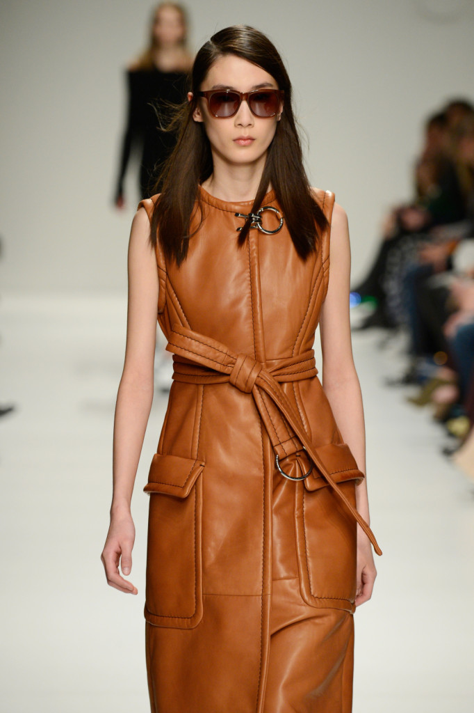 Tra i tessuti impiegati per la collezione autunno inverno la pelle e il color cuoio