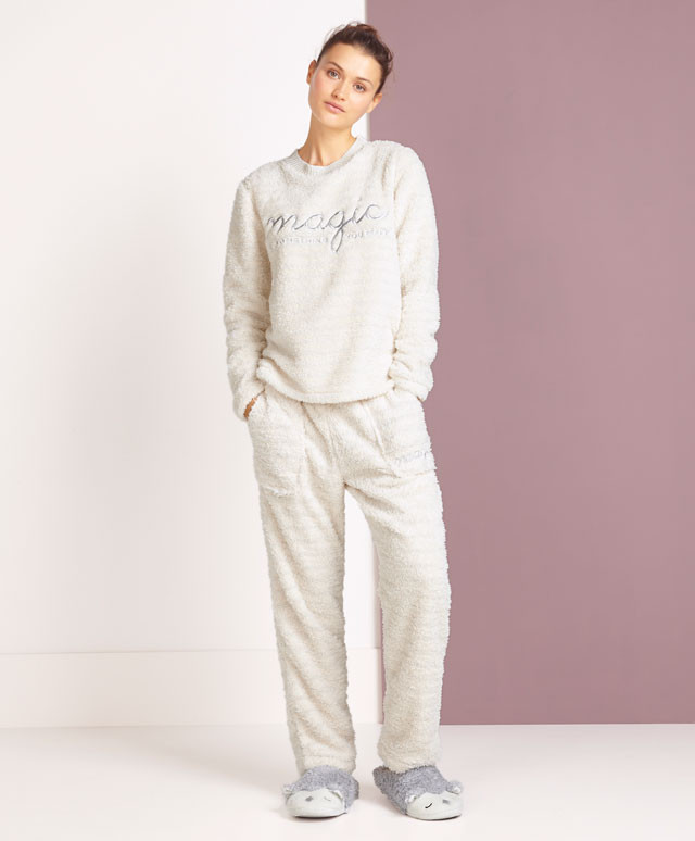 Siete di quelle per cui dormire significa avvolgervi in un pigiama caldo, morbido e confortevole, che vi faccia sentire protette e coccolate? Allora fanno per voi i modelli in pile proposti da Oysho: caratterizzati da colori soft come grigio, azzurro, rosa e bianco e da giocose fantasie di animali, nuvole, cuori e stelline, sono disponibili nelle taglie dalla XS alla XL e “componibili”, per cui potete abbinare maglie (da 16,99 euro) e pantaloni (da 22,99 euro) come più vi piace.