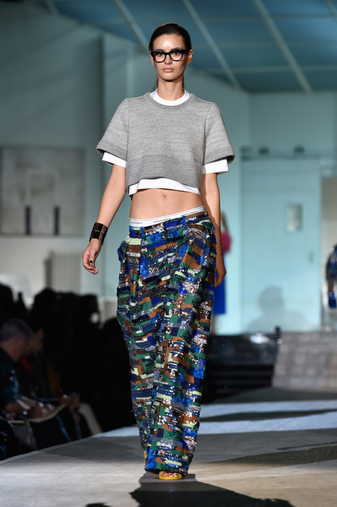 E ugualmente energetica, ma significativamente più indossabile è anche la seconda parte della collezione Dsquared2 ss 2015. Uno street wear sporty-casual che strizza l’occhio alla moda maschile, e che si declina in micro top e t-shirt sportive, maglioni multicolor e felpe col cappuccio, giacche preziose e colorate e pantaloni oversize, gonne in seta.