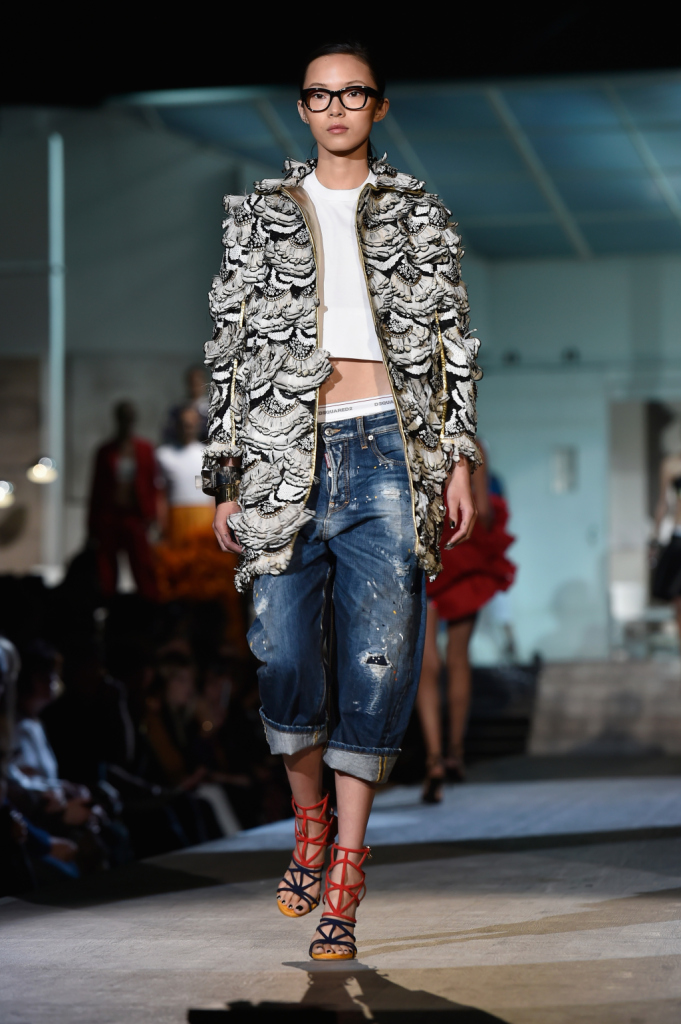 Vitaminica e allegra la collezione Dsquared2 primavera-estate 2015 alla settimana della moda milanese: tra vestiti-scultura e streetwear
