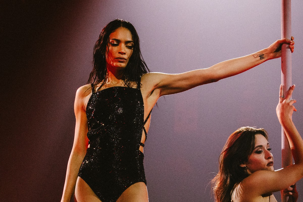 Per la prima data romana del suo tour invece, tra i diversi outfit proposti, Elodie si è scatenata in una sexy pole dance con indosso un body nero scintillante di Philosophy by Lorenzo Serafini. Si tratta di un capo con lacci da annodare sulla schiena, ispirato ad un design della collezione Resort 2024, in jersey compatto abbinato ad una rete in cristalli creato appositamente per lei.