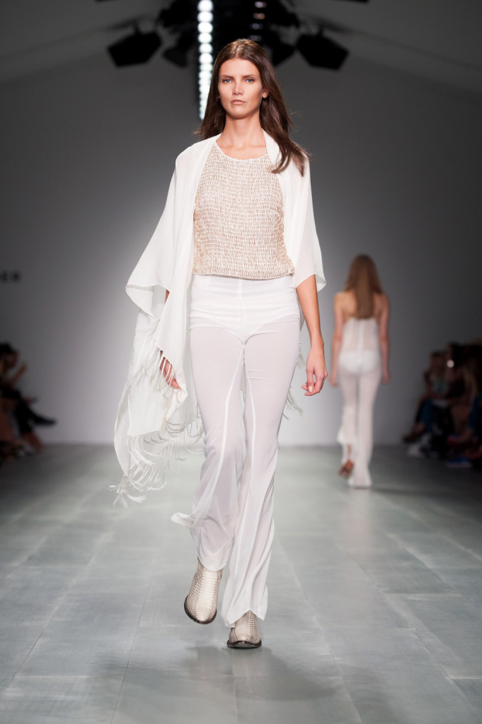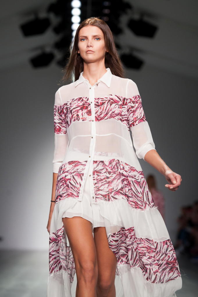 Molti bianchi e molti neri, eleganti ma non impegnativi per le sere della bella stagione, ma ma insieme per un look black&white. Felder Felder per la prossima ss 2015 preferisce puntare su look total white e altri total black. Che dominano una palette piuttosto selezionata, con alcuni toni neutri e naturali – sabbia & co. – e altri, più vitaminici, mai proposti in tinta unita, ma soltanto in fantasie astratte ricorrenti (e abbinate, all’occasione, solo al bianco, ma mai al nero): verde acqua, bianco e azzurro, celeste (quasi) leopardato nero, bianco e rosso, tonalità di rosso, fucsia e viola, giallo e arancio. Con l’unica eccezione del prorompente azzurro metallizzato per shorts e minigonne.