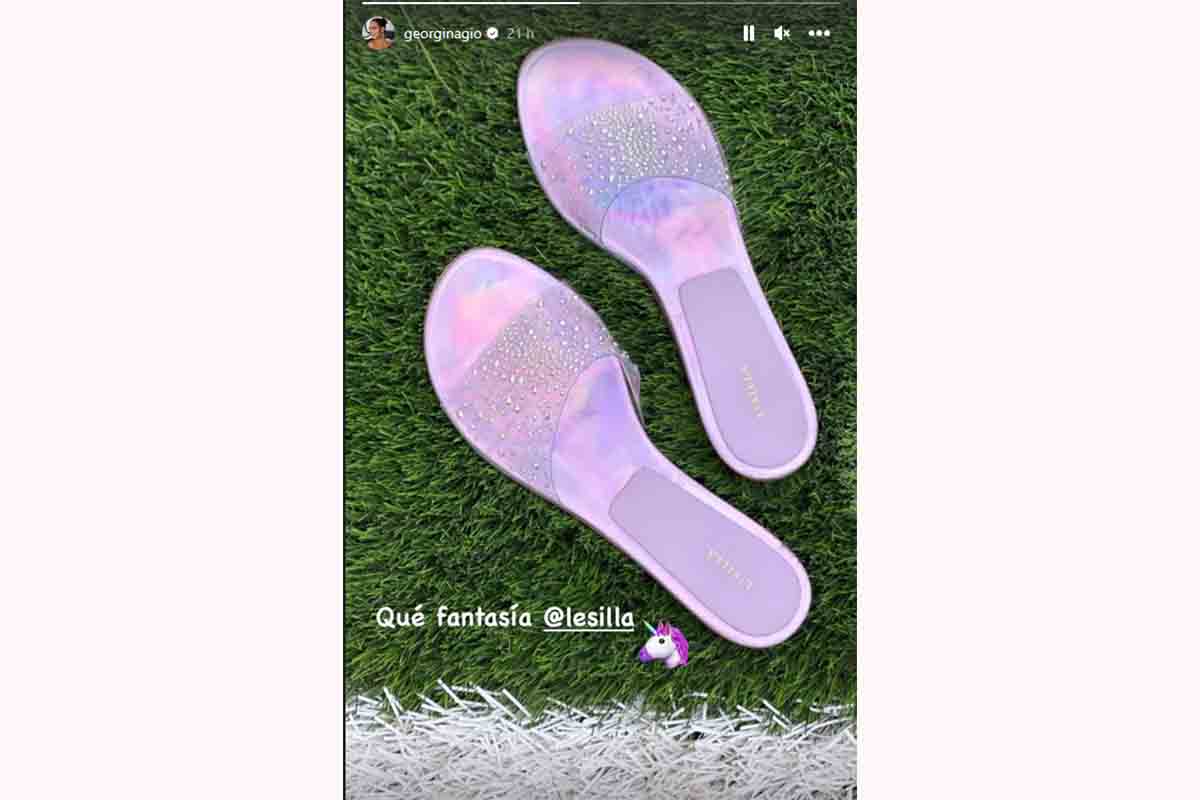 Si tratta del modello Nicole, che appartiene alla Capsule Collection di Le Silla per la Ramadan Campaign di Farfetch. La particolarità di queste pantofole è che la suola conferisce un effetto iridescente color lavanda e la tomaia è in plexy trasparente impreziosita da cristalli. Sul sito ufficiale del marchio costano 676 euro. Georgina Rodriguez le ha indossate anche per uscire. Infatti, nelle sue Storie su Instagram pubblica una foto delle sue nuove “scarpe” preferite adagiate su un prato, durante un momento di relax. Perché va bene riposarsi sull’erba, ma non bisogna mai rinunciare al lusso.