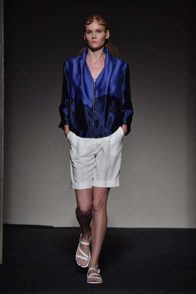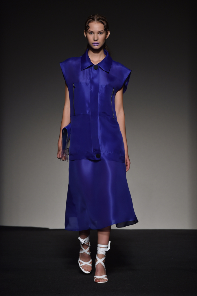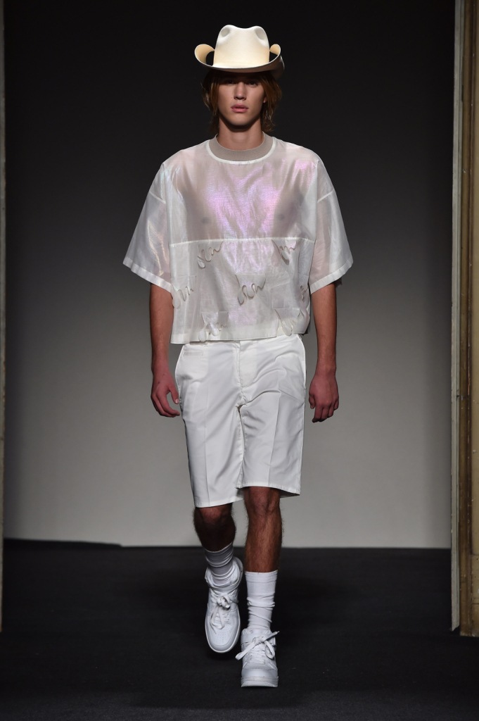 La collezione spring-summer 2015 si distingue per le linee semplici ibridate con volumi più strutturati e per la reintepretazione dei classici street e dello sportswear, che si incontrano e si confondono con un’eleganza essenziale. Si assiste a una sfilata con molti capi che nascono dal lessico giovane ma assumono significati stratificati e diversi, come le stoffe usate.