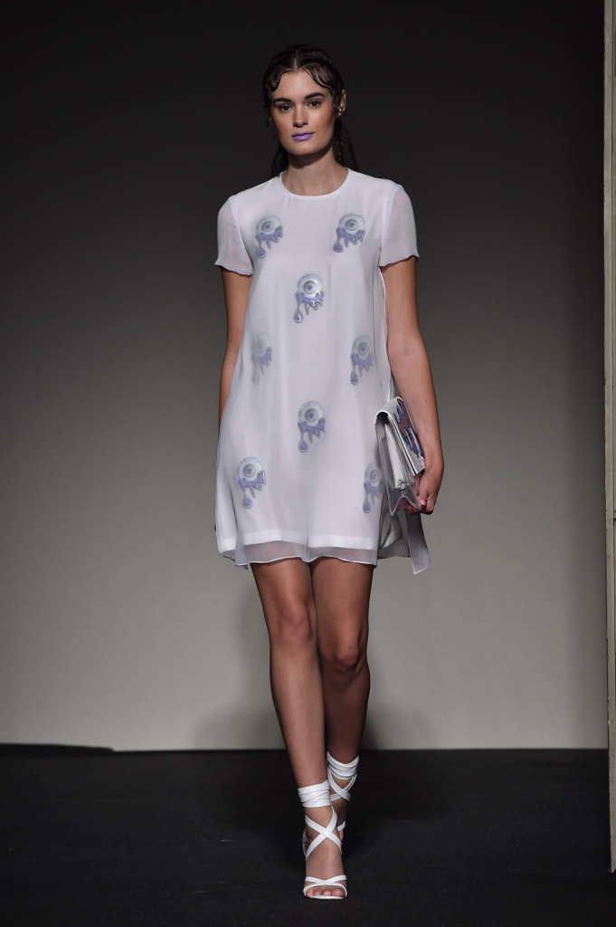 Abito bianco con stampa di ispirazione sportswear / Grinko SS 2015