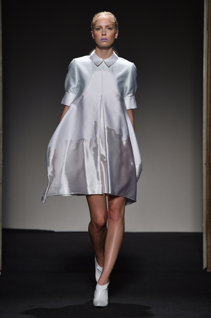 La leggerezza della struttura in questo abito bianco e grigio / Grinko SS 2015