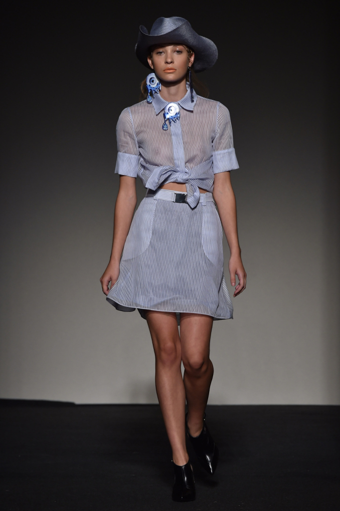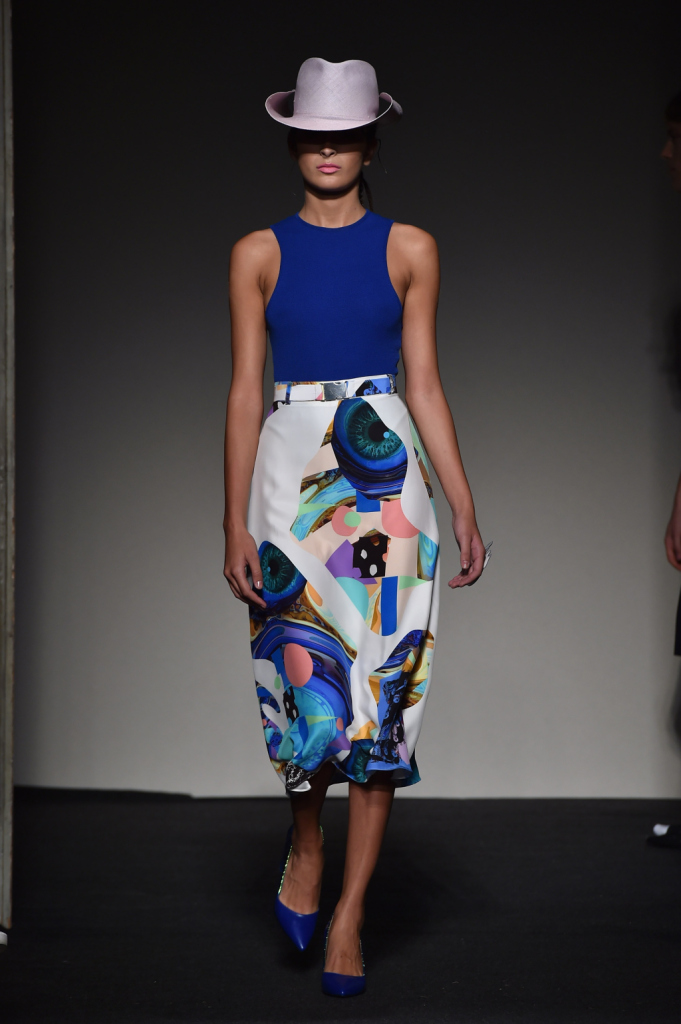 Giustapposizioni: il body blu con gonna stampata e cappello texano / Grinko SS 2015