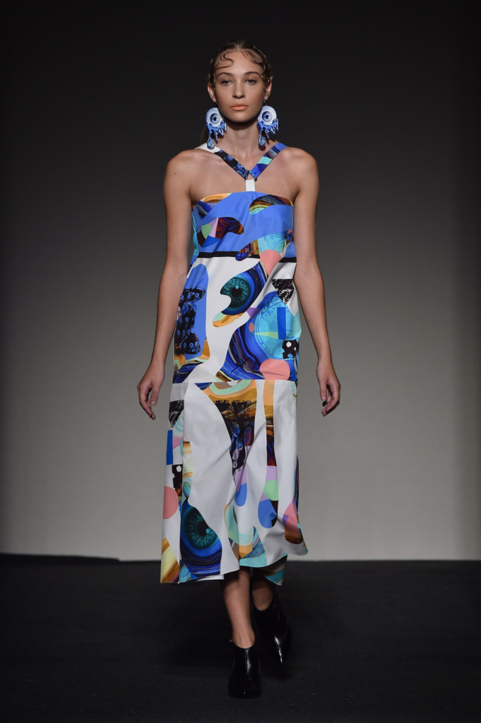Abito con scollo a Y e stampa progettata sul motivo dell’occhio / Grinko SS 2015