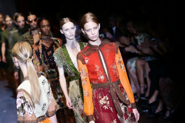 Un tuffo negli anni Settanta per la collezione primavera-estate 2015 di Gucci: dallo stile hippie-chic con fiori, frange e pantaloni a palazzo allo stile neo-army, con un languido sguardo all’Oriente