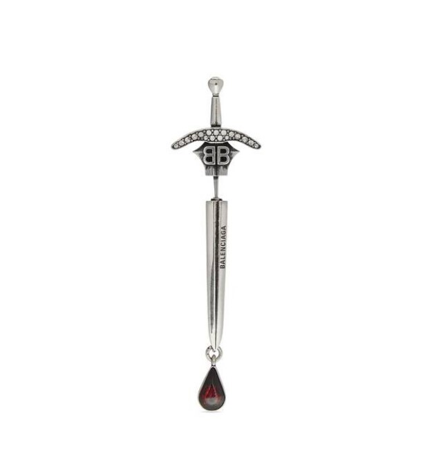 Halloween e gotico vanno a braccetto: che ne dite di completare il vostro outfit con il mono orecchino Goth Sword di Balenciaga (295 euro)? La spada con la goccia di sangue si farà notare nei contesti più fashion e si può usare… tutto l’anno.
