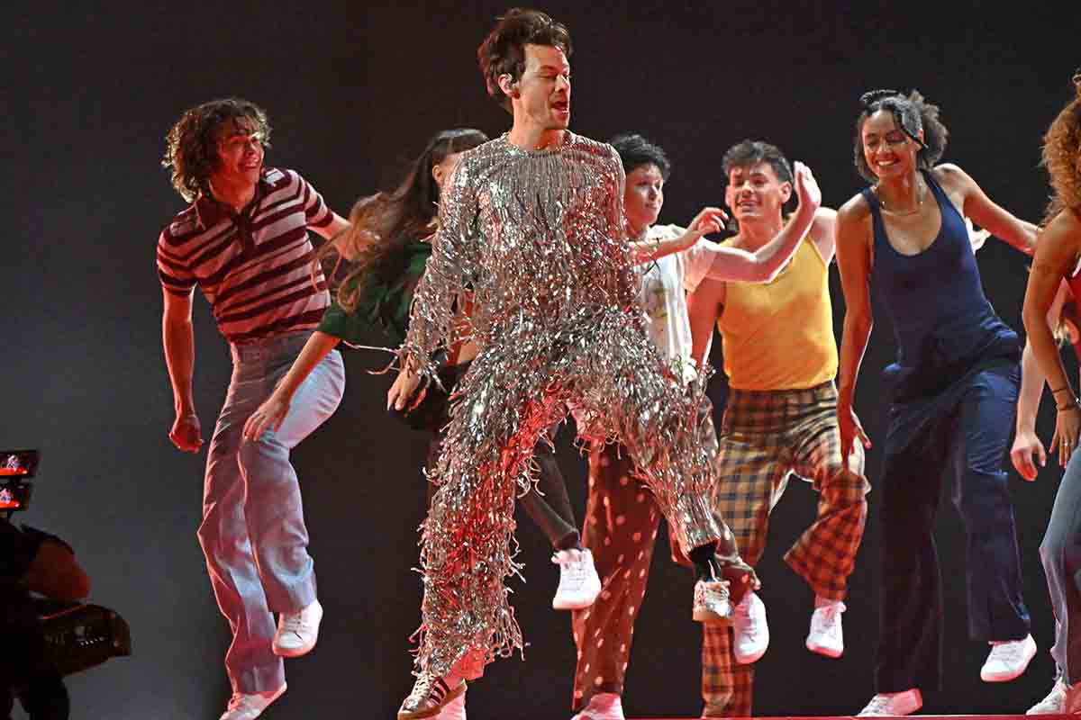 Quindi, Harry Styles ha scosso la Crypto.com Arena di Los Angeles con una affascinante tuta con frange di paillettes argentate, mentre eseguiva il suo singolo di successo “As It Was”, agitandosi e ballando intorno al palco rotante con i fili scintillanti che si muovevano all’impazzato creando un effetto spettacolare.