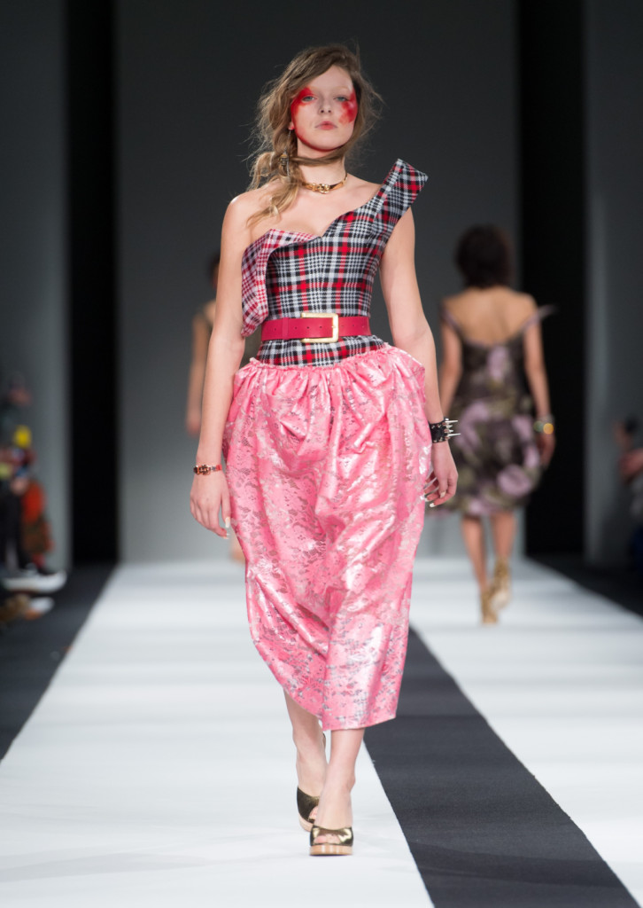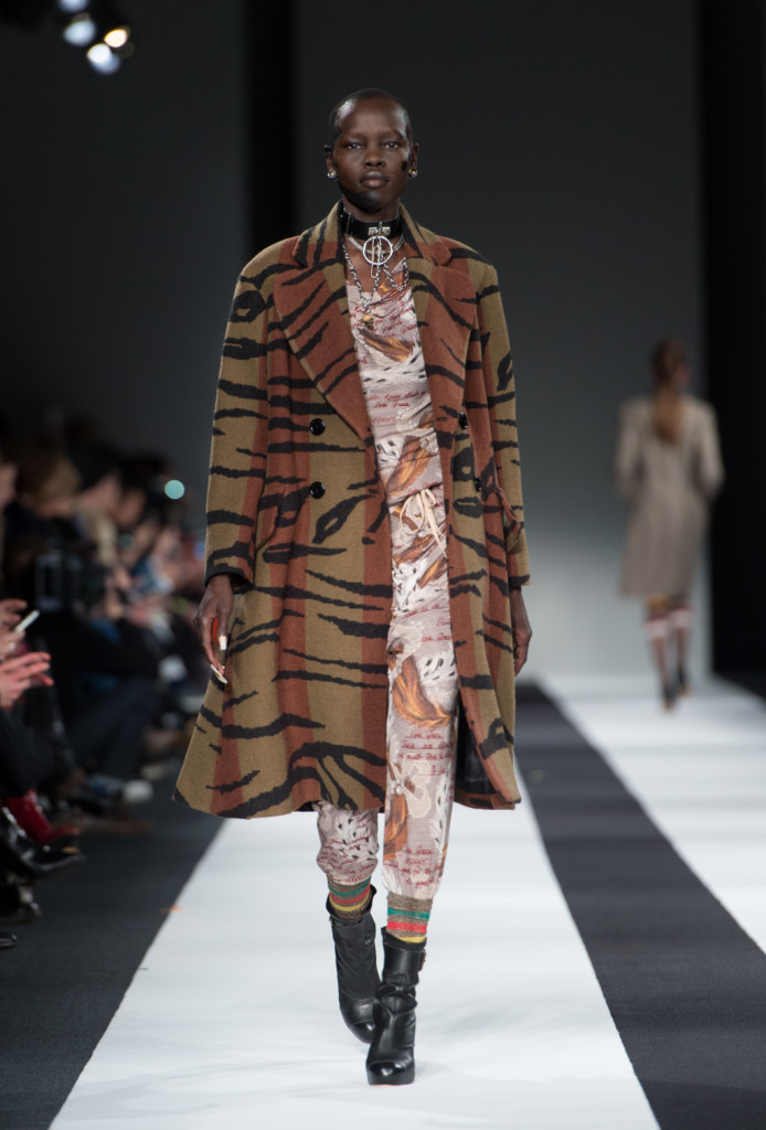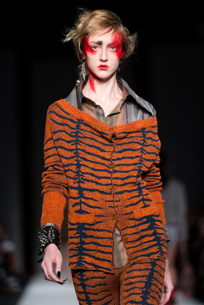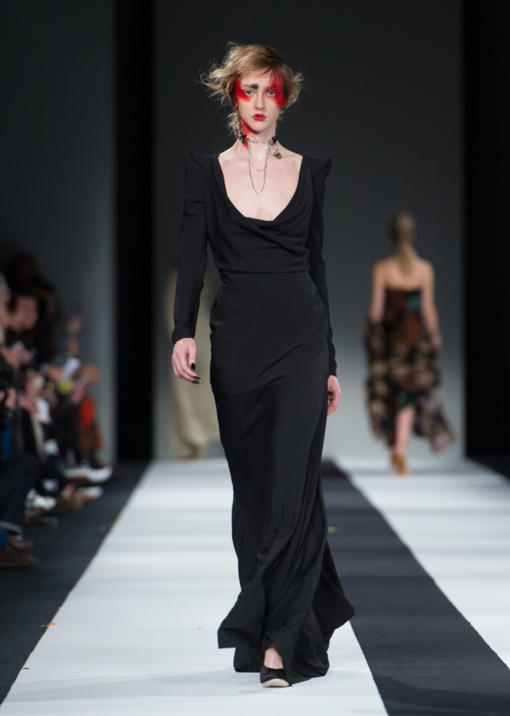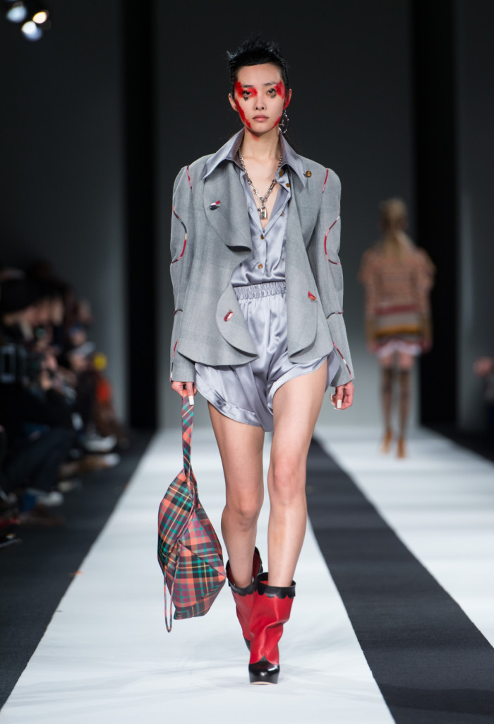 Vivienne Westwood con la sua collezione Red Label rivendica il ruolo della cultura e dell’arte, si schiera dal lato green. In passerella ci sono giochi di look, stile punk e molta arte.