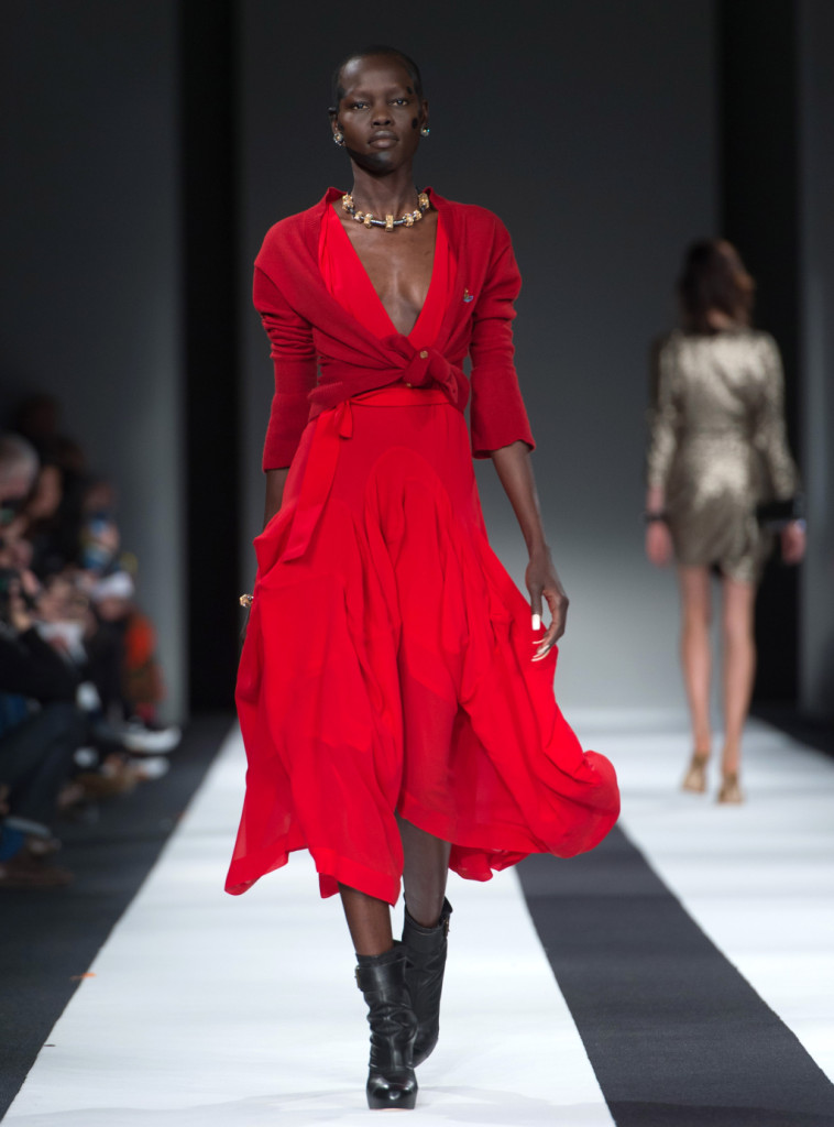 Dalla London Fashion Week e dalla catwalk di Vivienne Westwood il coro make up sembrerebbe avere in gradimento i toni scarlatti, l’eye-liner nero e grafico, l’incarnato naturale. L’hairstyle ha un allure messy ma opaco.