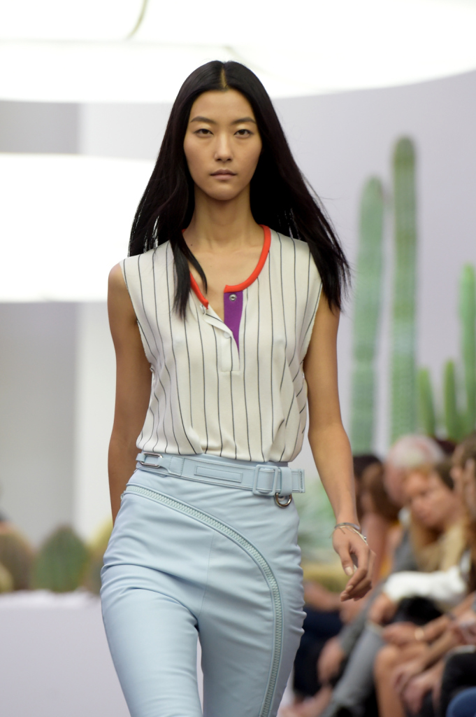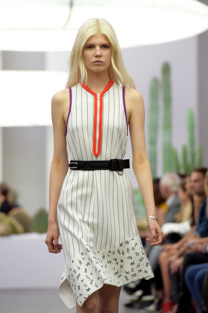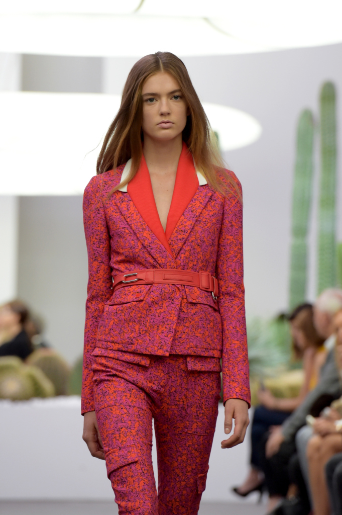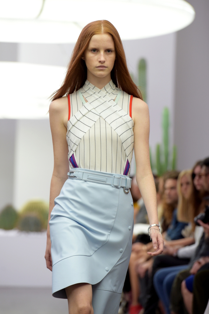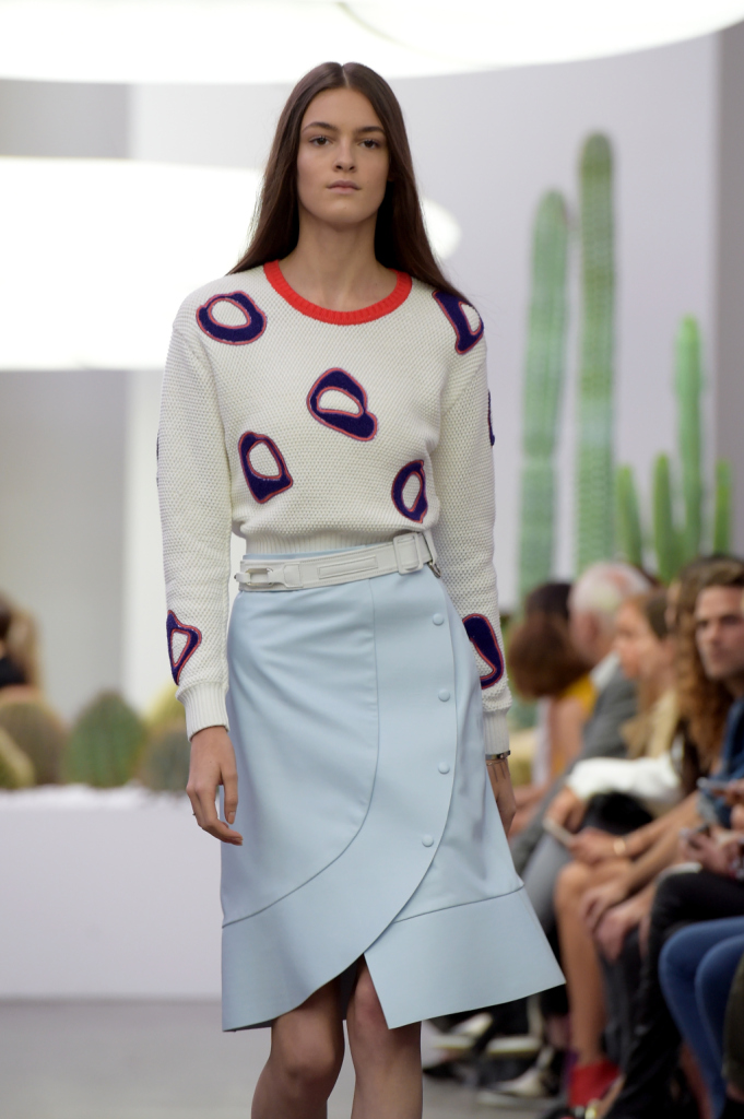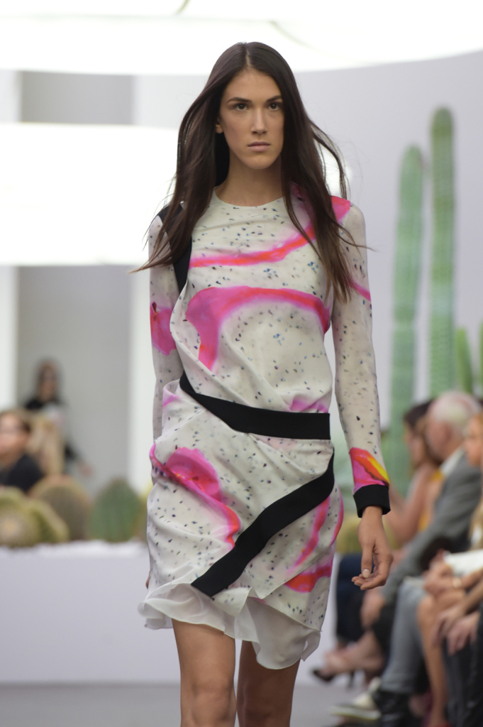 È il sud della California a ispirare la collezione primavera-estate 2015 firmata Iceberg. Una ss 2015 allegra, easy, urban, sporty come un viaggio all’aria fresca – a lato della strada, i cactus che troneggiano anche a bordo passerella –, sotto il sole caldo di Palm Springs. Una ss 2015 per una donna forte e sicura di sé – come racconta il designer Alexis Martial, direttore creativo del brand e come evidenziano le luci dei neon in passerella: fredde e un po’ da film fantascientifico anni ’70, ma addolcite dalla combinazione con una musica estremamente chill out.