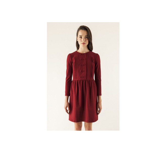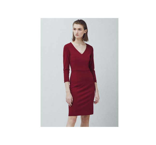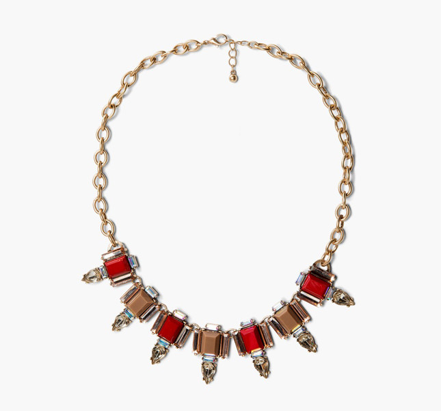 Perfetto è il tubino rosso marsala, avvitato e con cuciture firmato Mango: un abito semplice da arricchire con gli accessori, come il maxi anello a forma di fiore con cristalli firmato Zara oppure la raffinata collana Mango con cristalli sfaccettati a riprendere il colore del vestito.