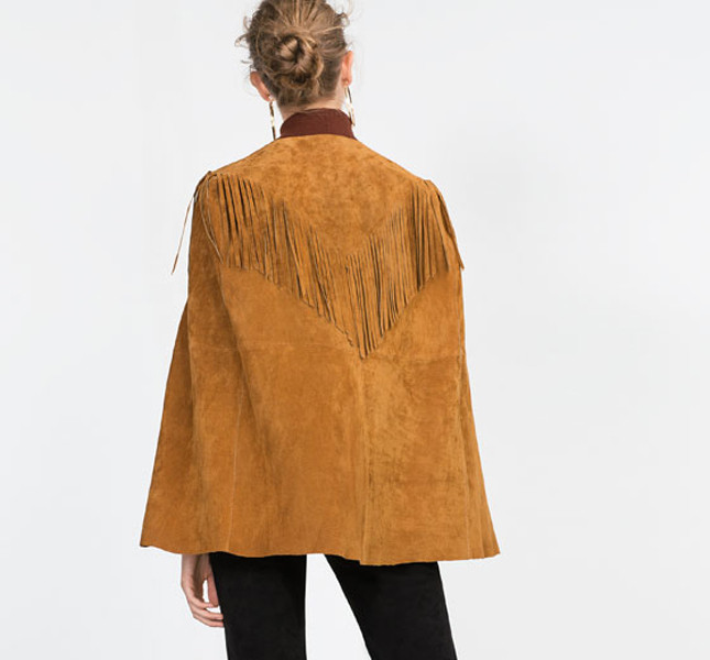 Perfetta è la mantella firmata Mango con frange all over oppure la mantellina corta firmata Zara, con deliziose frange sulla parte posteriore.