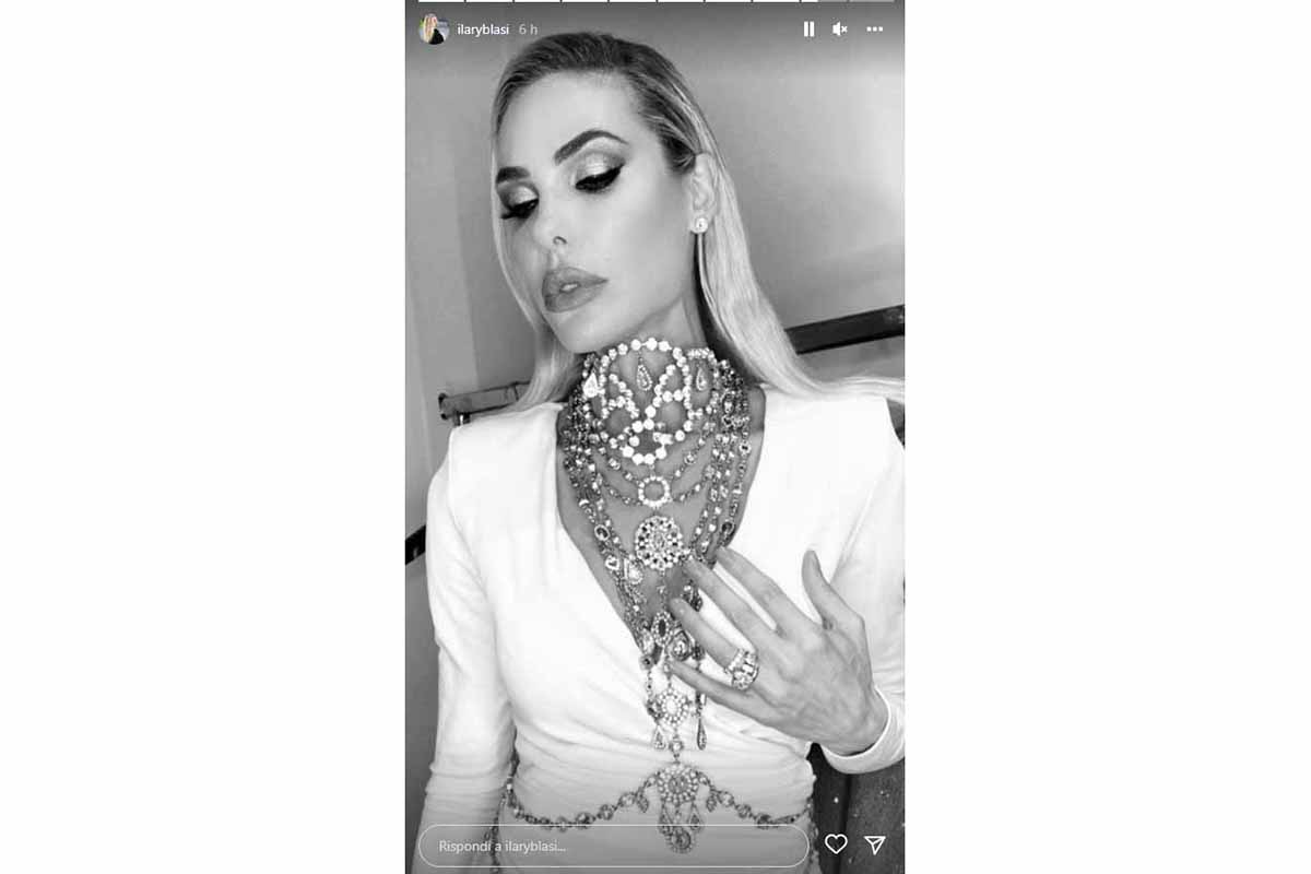 Ilary Blasi con la collana-cintura che ha stupito tutti (ph Instagram @ilaryblasi)