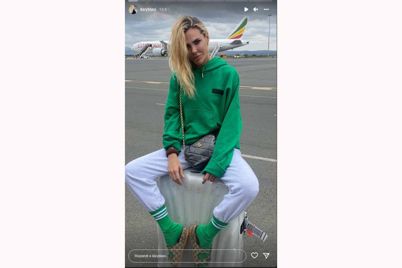 Il look da viaggio di Ilary Blasi (ph Instagram @ilaryblasi)