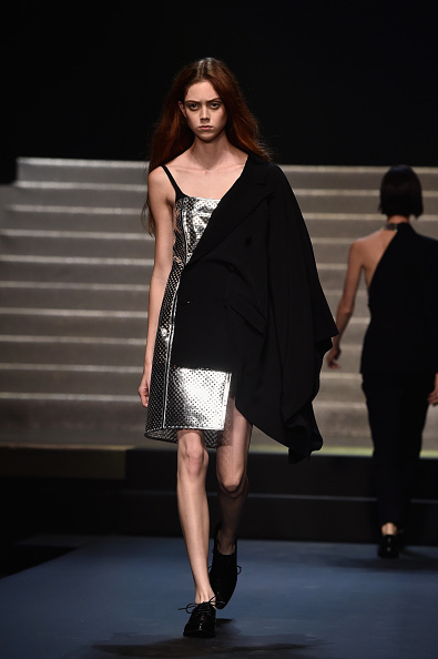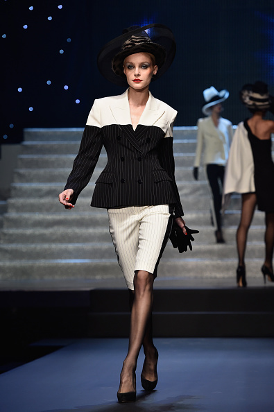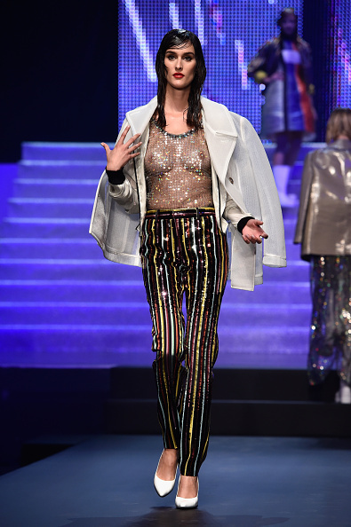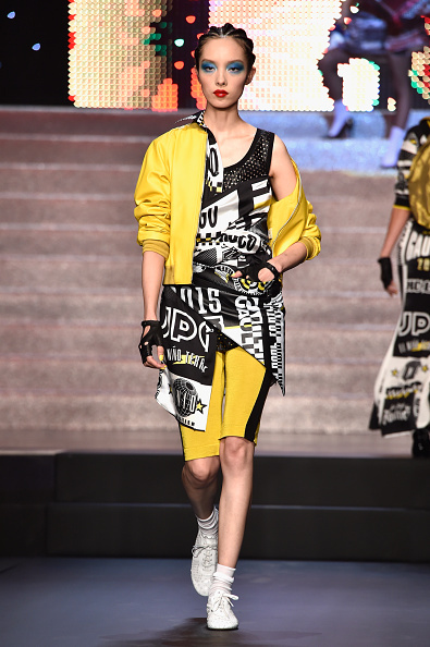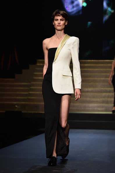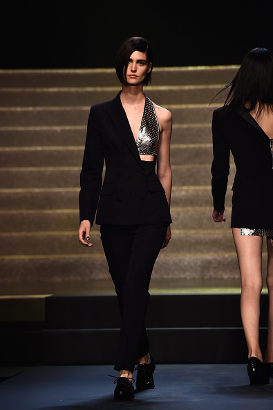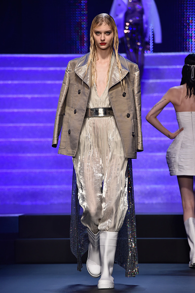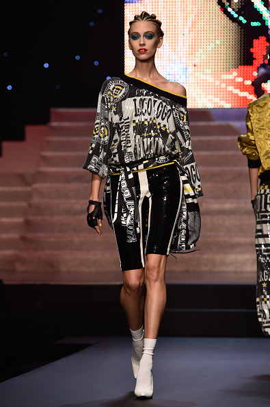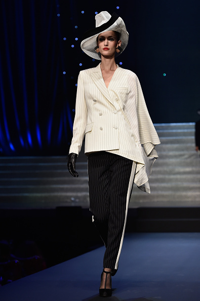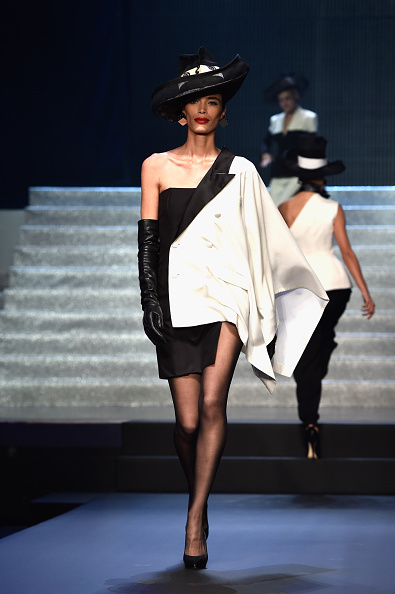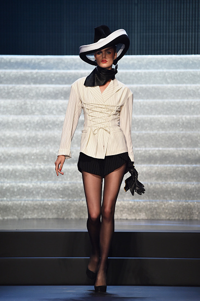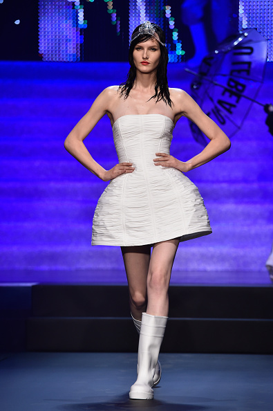 Jean Paul Gautier sa come provocare gli animi, anche i più tranquilli: ecco allora una sfilata attualissima che reinterpreta la realtà che lo circonda e la mette in scena in maniera divertente. La cultura smartphone, l’ossessione per lo sport, le differenze d’età tra i sessi, tutto spiegato in questa impressionante sfilata di personaggi più che di modelle. Ma non solo: Jean Paul Gautier porta all’eccesso il cut out, tagliando interi pezzi di abiti e blazer e completi, lasciando in piedi solo una sensazione di incompletezza che ci accompagna sempre.