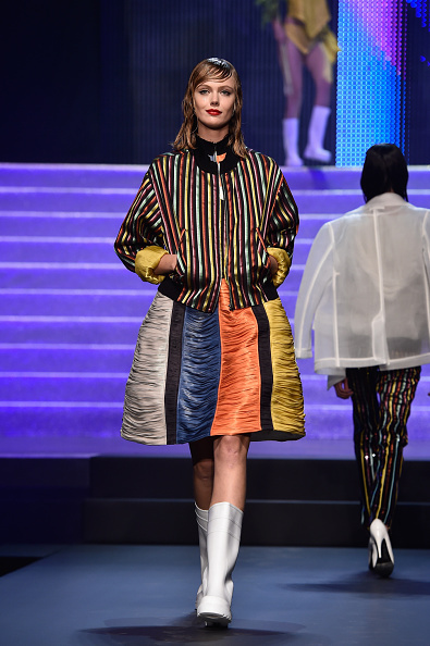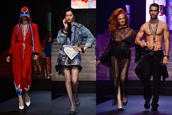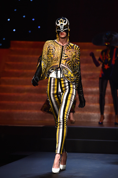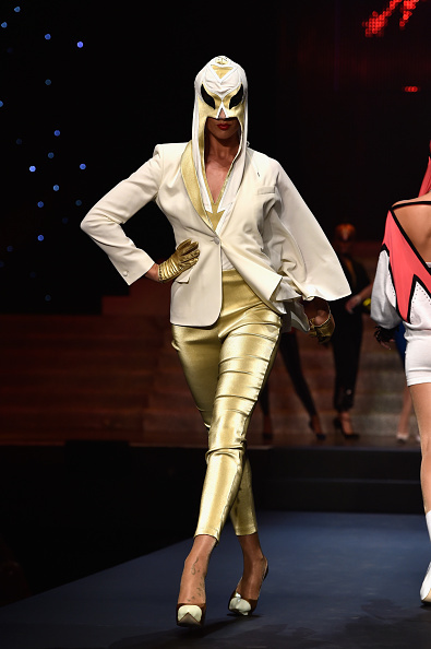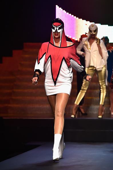 Cappucci con maschere da wrestling, svenevoli ragazzi al cellulare, tate in divisa del secolo scorso, donne “di una certa età” – le cosidette cougar – a passeggio sulla passerella con modelli senza maglietta dai pettorali lucidi e ben torniti: no, non avete sbagliato strada e siete finiti al circo, è proprio la sfilata Jean Paul Gautier che anche per la collezione primavera-estate 2015 non smette di stupire. Tra gli ospiti dello show anche Catherine Deneuve e Amanda Lear.
