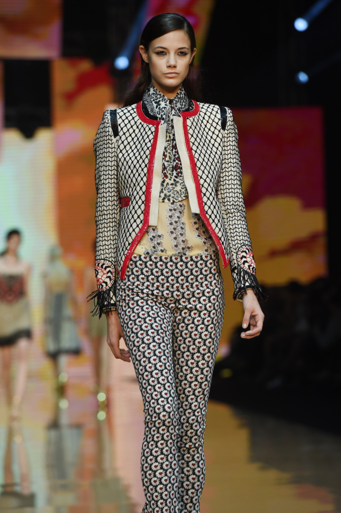 Alla Milano Fashion Week arriva il momento di Just Cavalli. Che per la primavera-estate 2015 orchestra una Bohéme di lusso, tra colori accesi, patchwork e stampe. In passerella sfila un beat travolgente che conquista con ruches, vestitini a rete o incrociati sul seno, gilet, giacche, pantaloni a zampa, gonne a tutte balze o con spacchi profondi, camicie dalla vestibilità comoda e colletti dai divertenti e vistosi fiocchi, abiti lunghi con spacchi simmetrici e vertiginosi.
