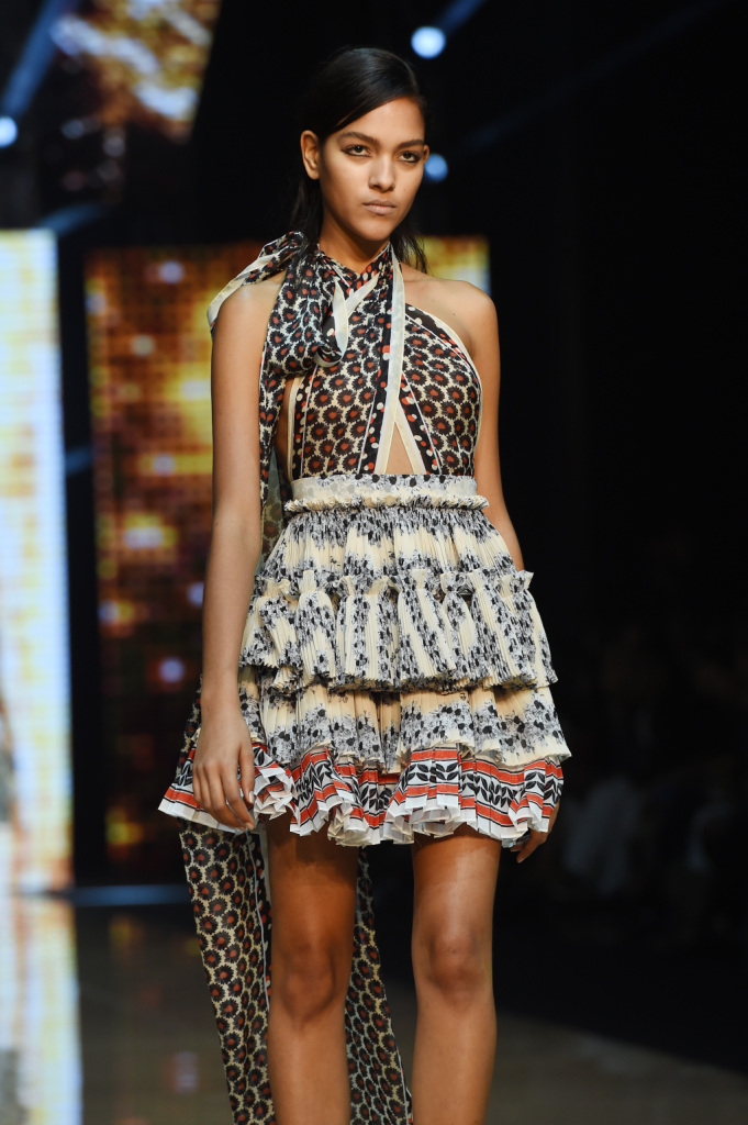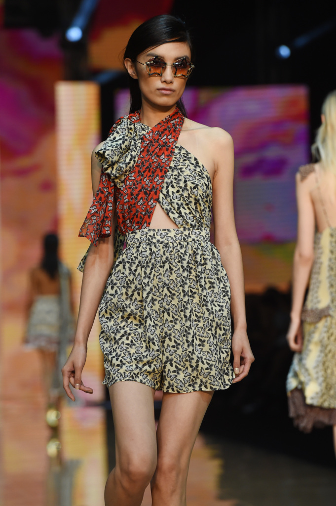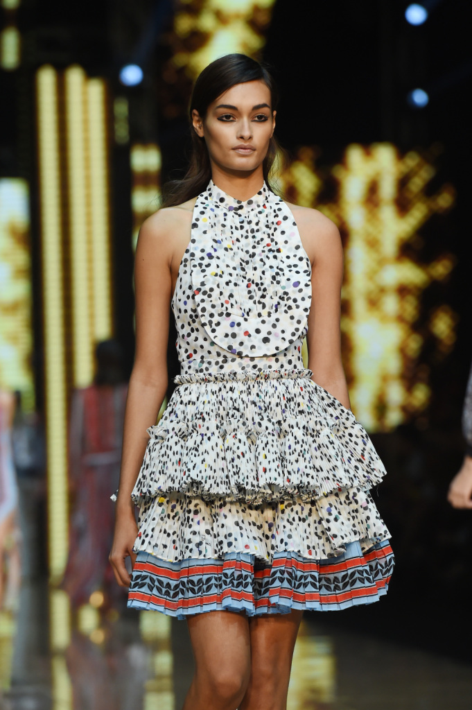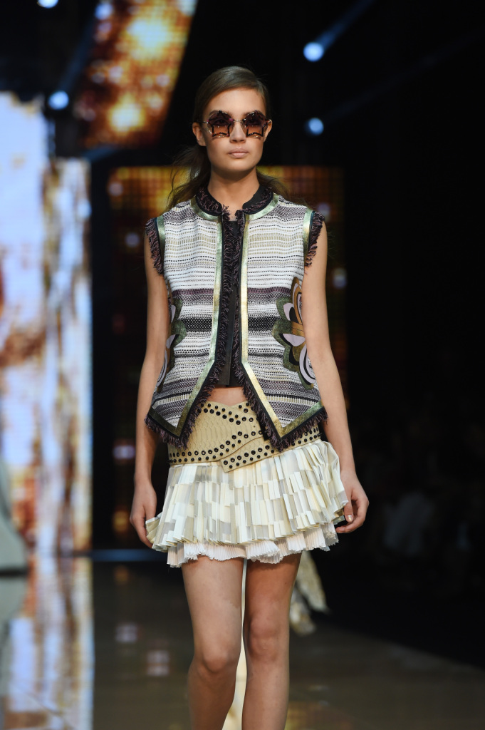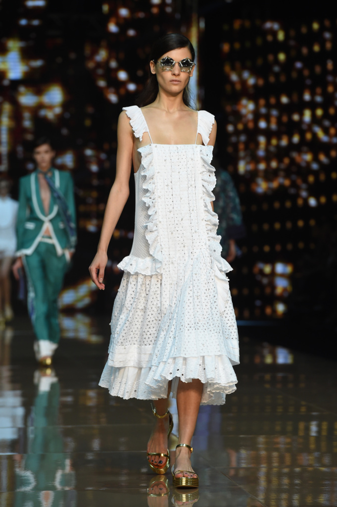 Tra i colori, a dominare sono il giallo e il viola, il verde e il rosso, il blu e l’arancio. Combinati tra loro con un mix di motivi, materiali, lunghezze che risuonano di echi hippie a fianco di altri più spiccatamente country. Se a dominare è un patchwork di rara leggerezza, non mancano le stampe animalier e soprattutto il sequin: la collezione primavera-estate della linea giovane di Cavalli vive tra gli anni Settanta e un ritorno – anzi, una gioiosa celebrazione – delle proprie origini. E si caratterizza per una pluralità e vivacità di outfit dall’animo più o meno romantico, più o meno musicale, più o meno rock – ma in ogni caso freschissimi e solari – tanto che a parità di ispirazione, con i mitici Seventies che sembrano aleggiare più che mai sulle passerelle milanesi, risulta assai più ricca e variegata delle proposte di altri designer, che forse han peccato un po’ di limitate variazioni sul tema.