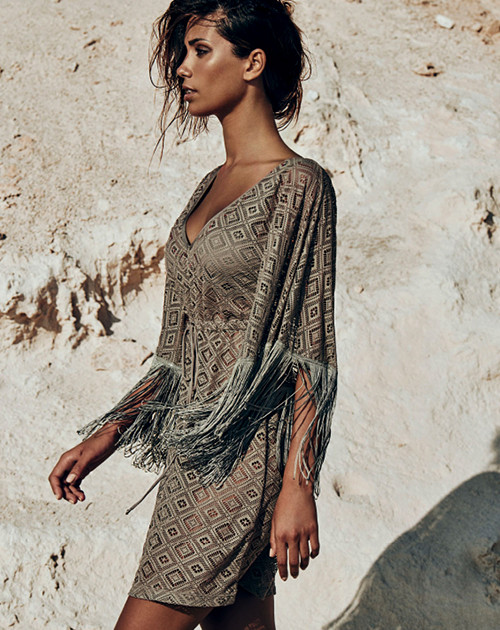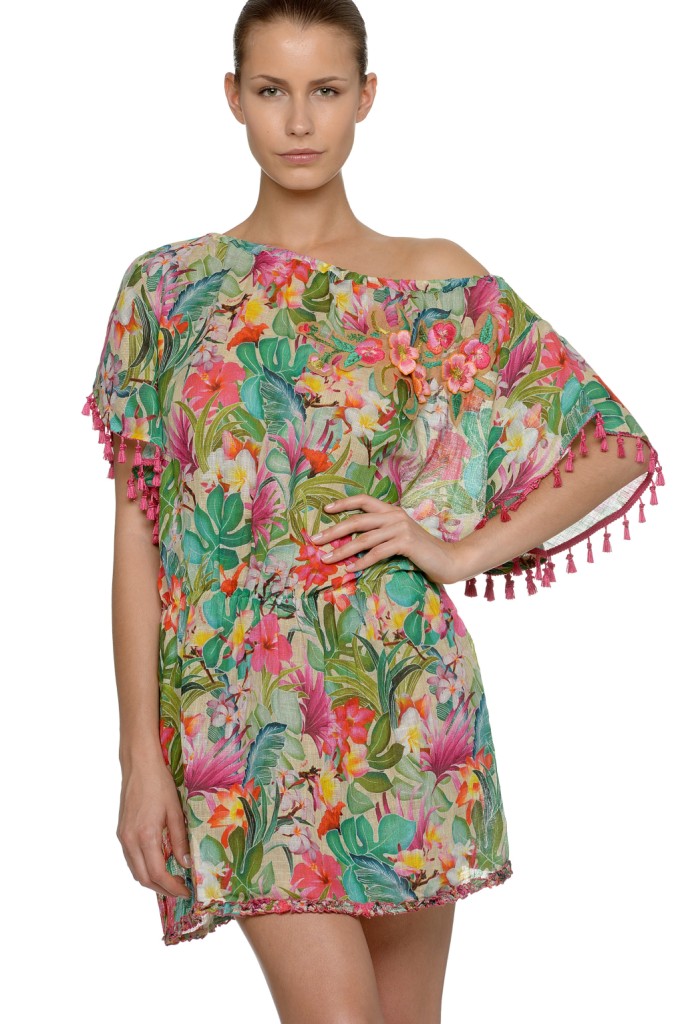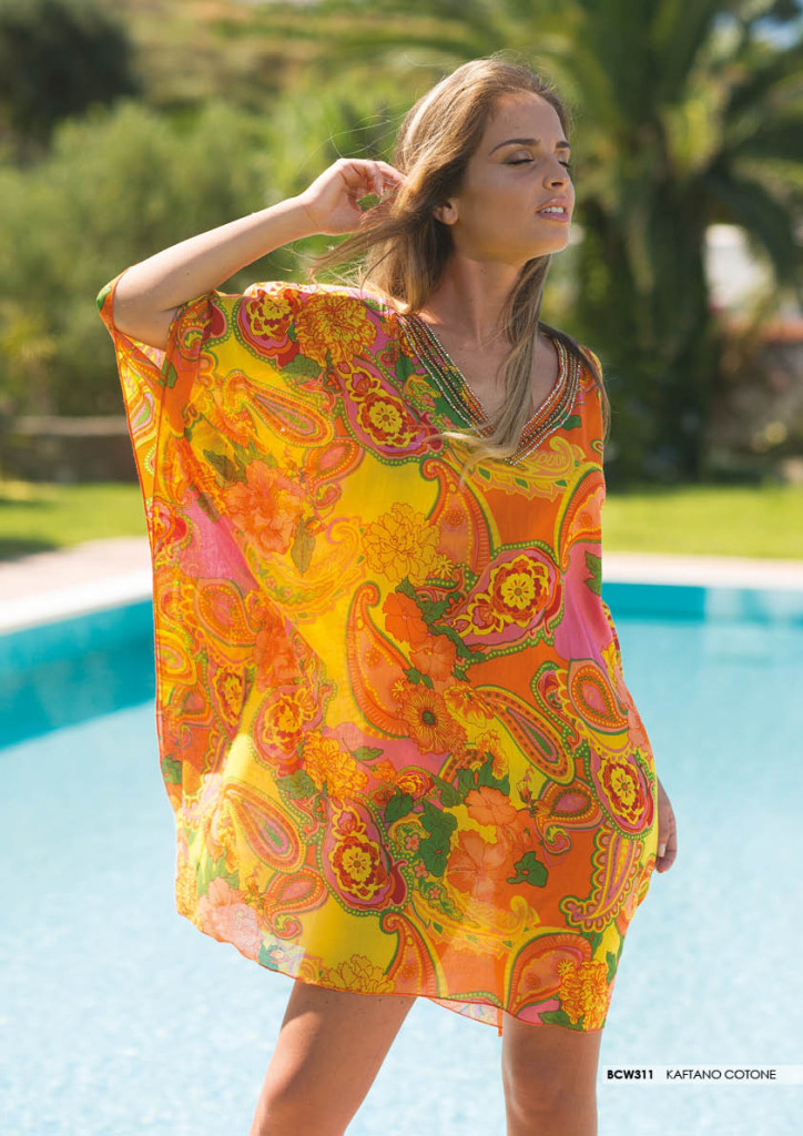Tra i brand più famosi di beachwear le proposte Parah sono tra quelle con modelli più eleganti e chic, kaftani in lino con scolli impreziositi da pietre gioiello, diversamente GoldenPoint propone per l’estate 2015 dei modelli in coordinato con la linea bikini, con varianti in tessuto semitrasparente o coprente con stampe geometriche e frange sulle maniche.