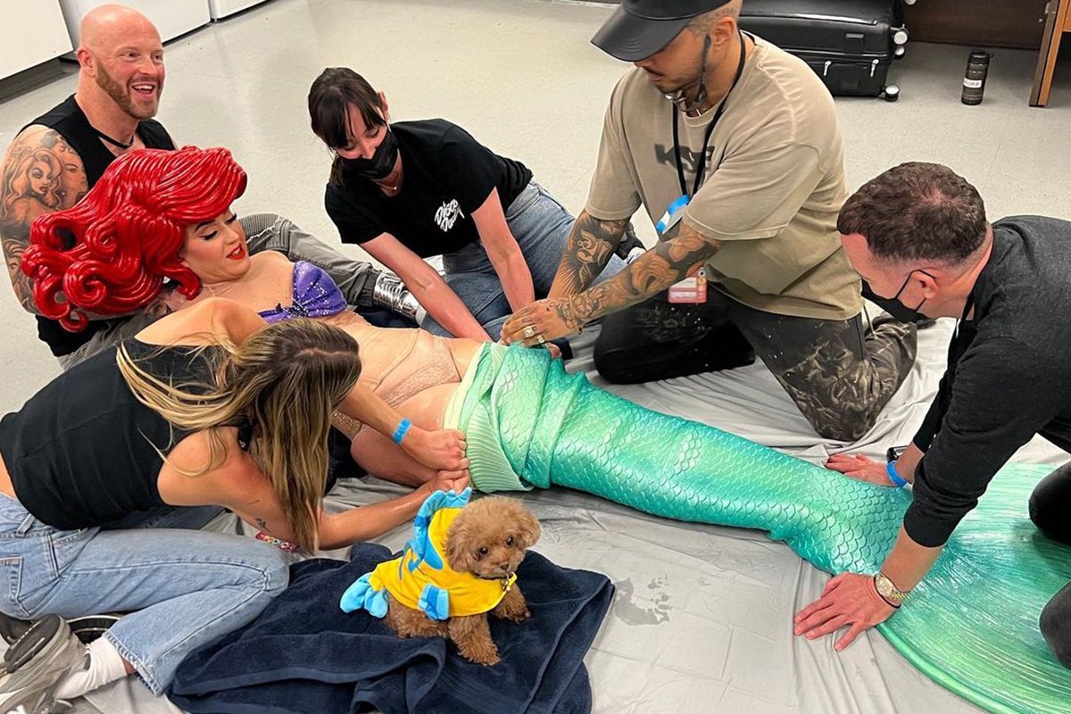 La cantante è appassionata di travestimenti e ormai ci ha abituati a stravaganze come presentarsi a celebri eventi, come i Met Gala, travestita da lampadario o da cheeseburger. Questa volta, però, ha un po’ esagerato: la pinna, infatti, era troppo rigida. Talmente rigida da impedirle i movimenti.