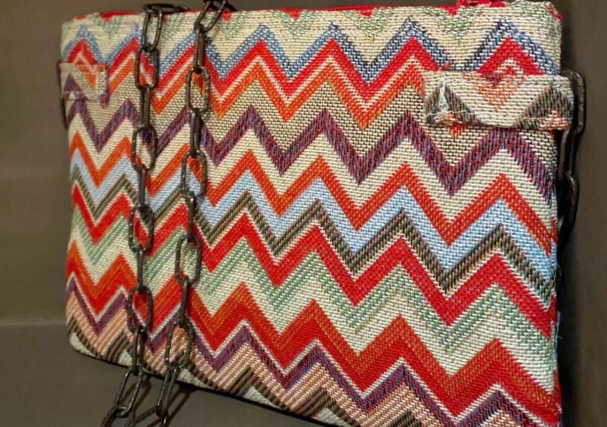Tutte le borse realizzate da Carolina sono create interamente con stoffa di riciclo come scampoli o vestiti non più utilizzati a cui lei da nuova vita, tagliandoli e ricucendoli in borse.