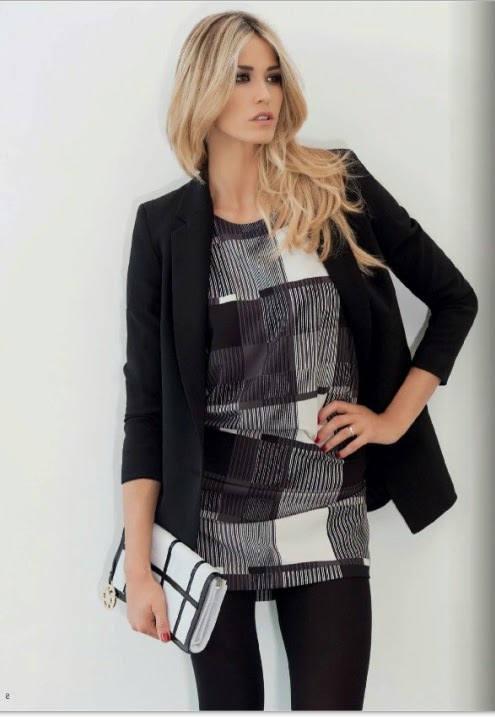 Un rincorrersi soprattutto di bianco e nero, mescolati insieme sullo stesso capo oppure proposti su capi diversi ma che proposti in coppia, che creano atmosfere glamour. Non mancano tonalità pastello, forme geometriche e inserti in pelle per una collezione sobria ma di grande carattere.