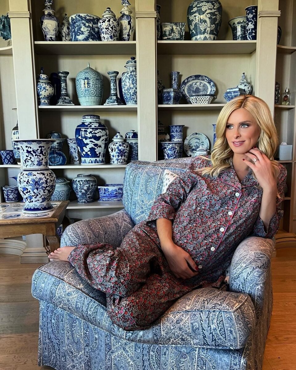 Villa Hilton-Rotschild è una vera fortezza del lusso, dove a far da padrone sono i colori pastello, i fiorellini, le righe, l’azzurro, il rosa e le opere d’arte di famiglia. Tra stanze arredate con stile, vasi pieni di fiori colorati, parchi e giardini e fontane, Nicky Hilton si aggira per la sua dimora come una vera principessa dalla vita perfetta, e dallo stile premaman ancora più perfetto e chic. Merito degli amici stilisti ai quali giorno dopo giorno Nicky Hilton si affida: dalla maison newyorchese Cara Cara alla stilista inglese Jenny Packham, fino all’amatissimo Oscar De La Renta.